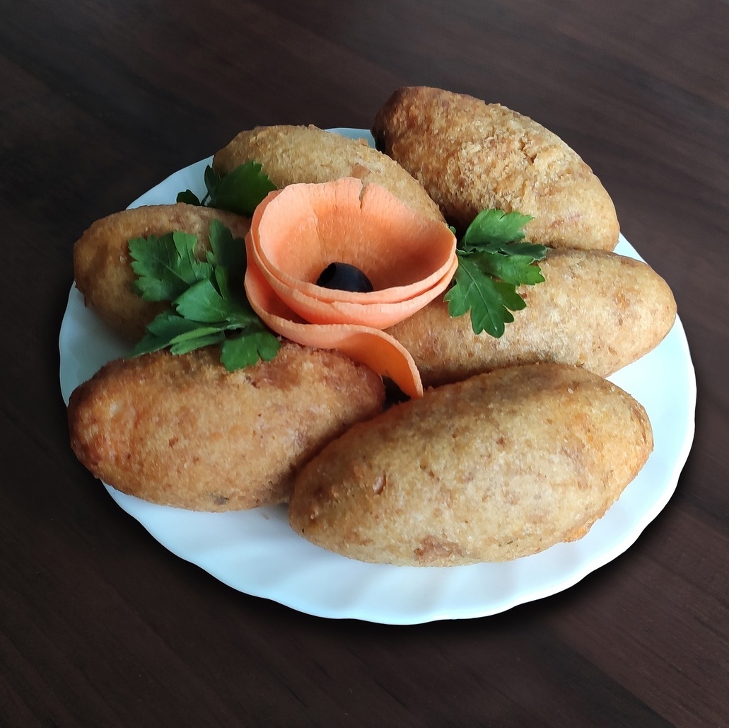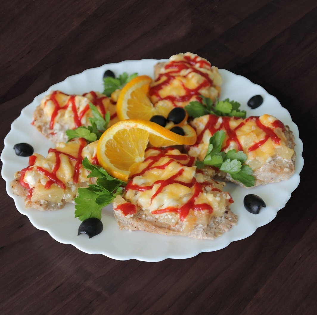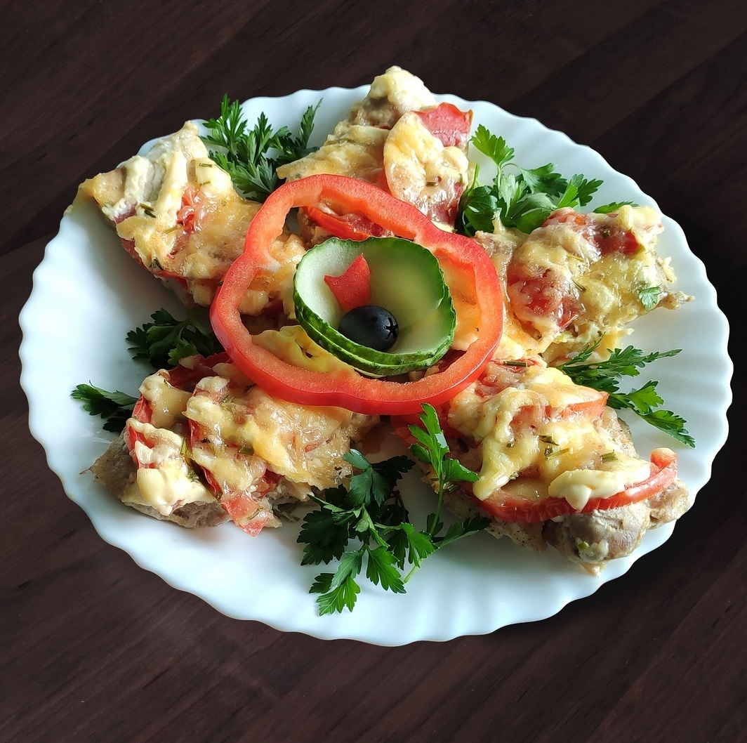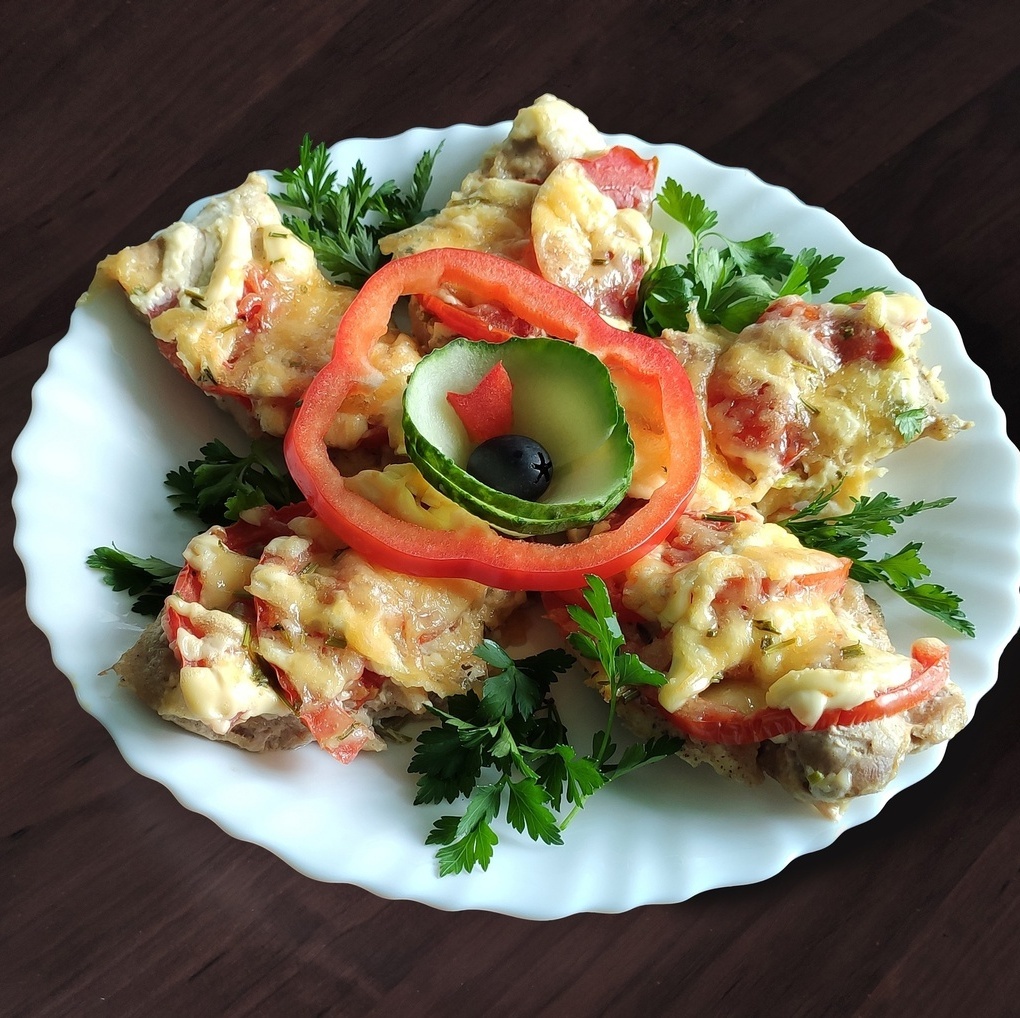 1. Нарезка мясная: рулет куриный с омлетом / буженина 2. Шашлык из форели