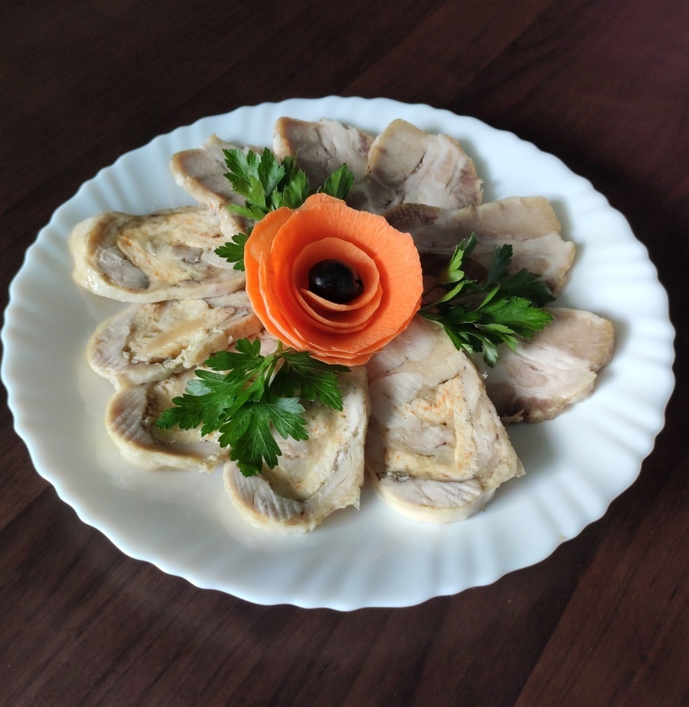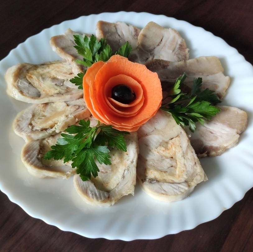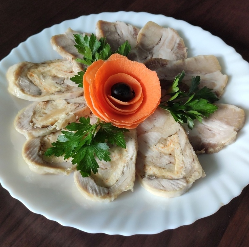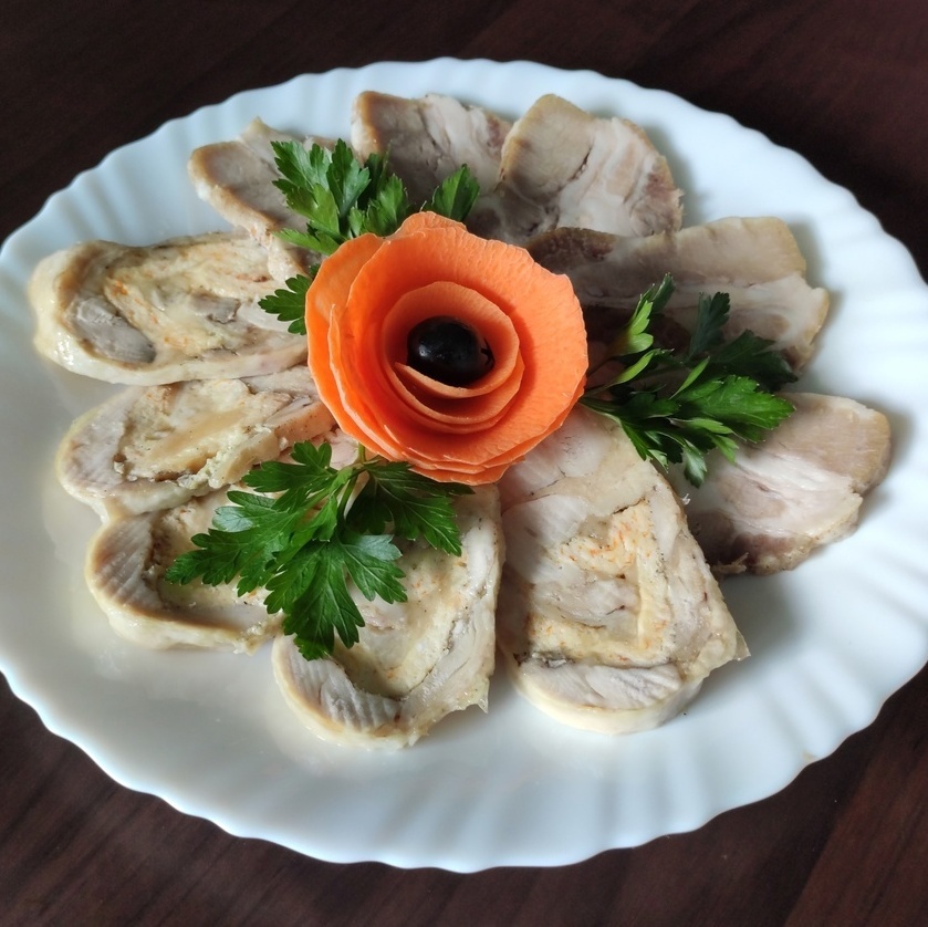 1. Нарезка мясная: рулет куриный с омлетом / буженина