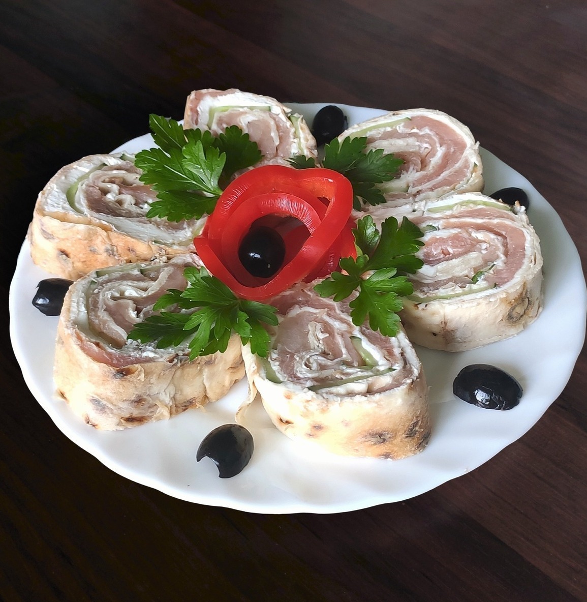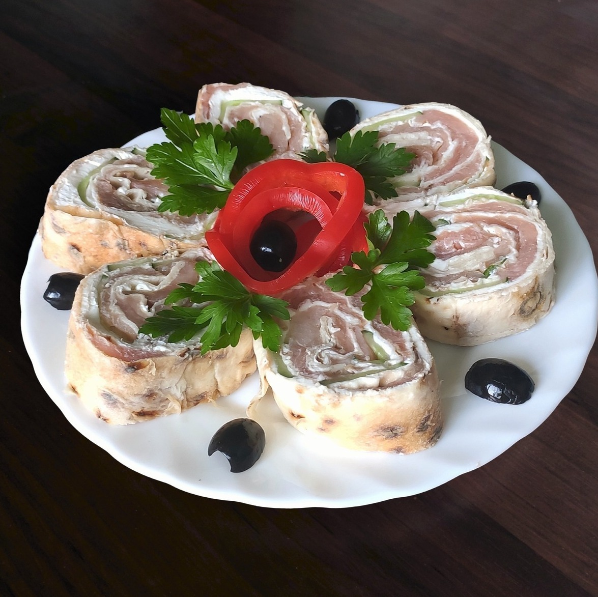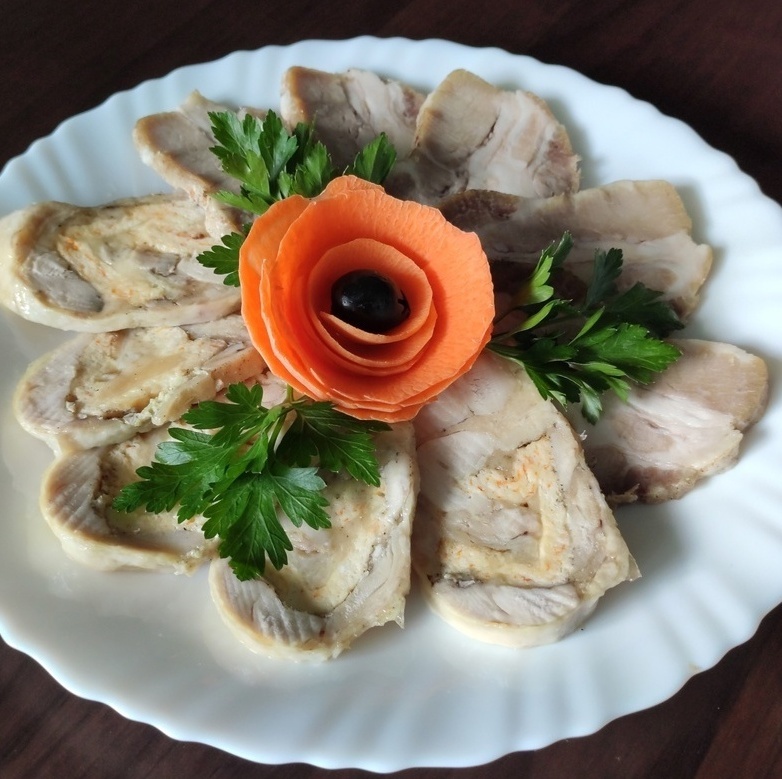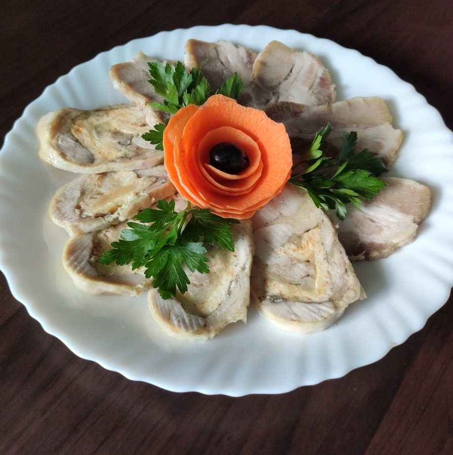 1. Нарезка мясная: рулет куриный с омлетом / буженина