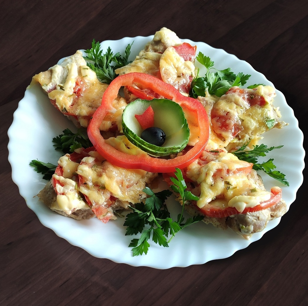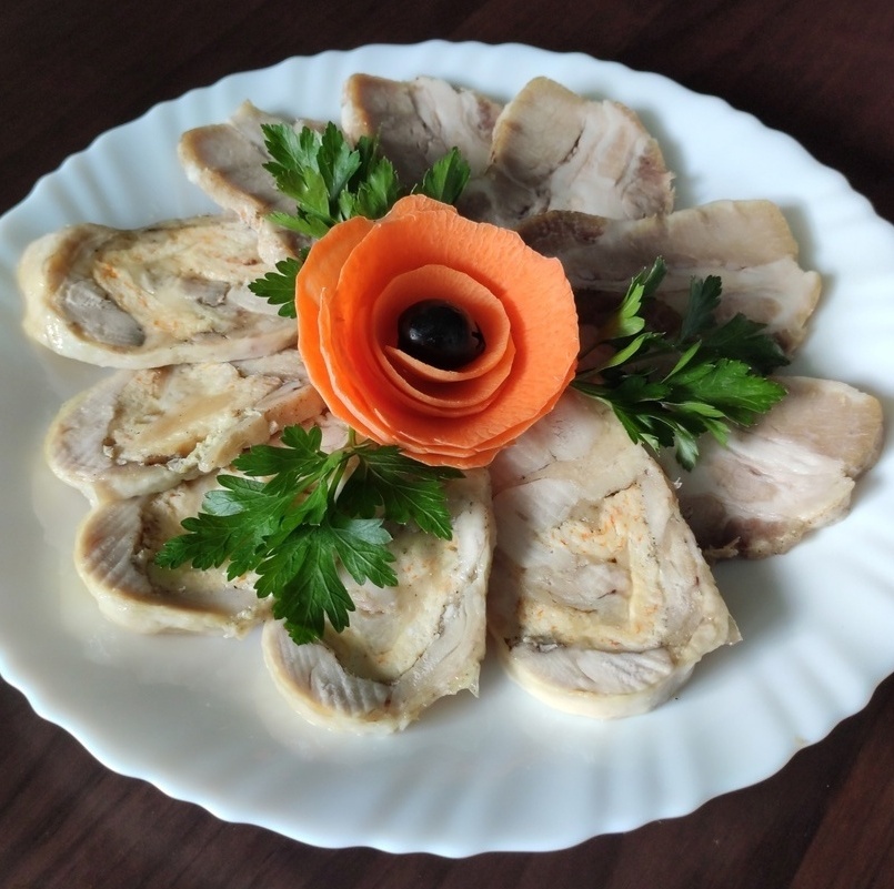 1. Нарезка мясная: рулет куриный с омлетом / буженина